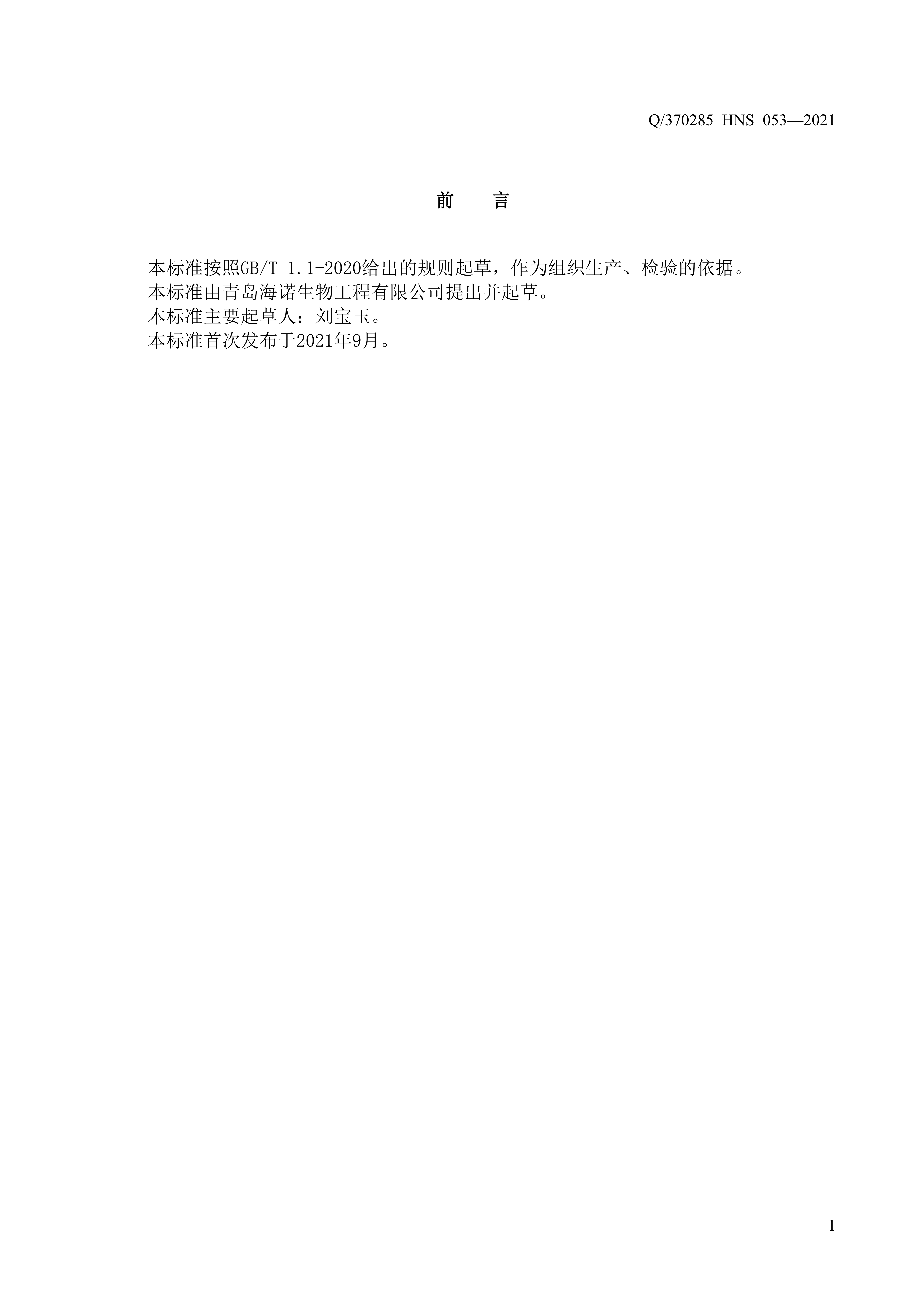 青島海諾生物工程有限公司企業(yè)標(biāo)準(zhǔn) — 一次性使用兒童口罩